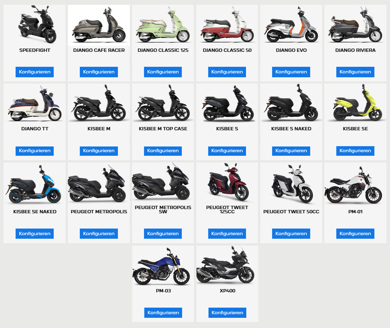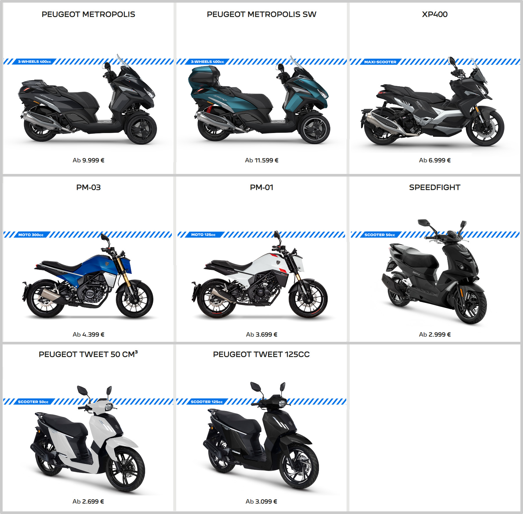 Seit dem ersten motorisierten Zweirad im Jahr 1898 hat Peugeot Motocycles kontinuierlich innovative Mobilitätslösungen für Ihre Bedürfnisse und Ihren Lebensstil entwickelt. Mit unserer breiten Modellpalette sind wir in über 70 Ländern vertreten. Sie haben die Wahl: 2- oder 3-Rad, Hubraum von 50 bis 400 ccm, Verbrenner- oder Elektromotor.